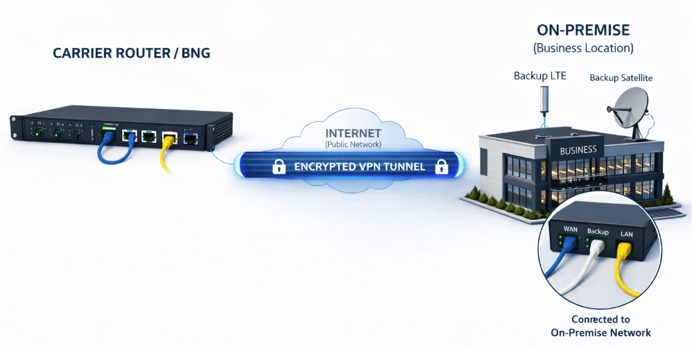 Thanks to the collaborative work between Archous, Core Transit, and Big Network, we can offer you a unique over-the-top layer 2 tunneling technology on uCPEs. This tunnel technology, coined here as “Ethernet Pseudowires”, is capable of transporting packets over the Internet (or any IP underlay) securely with encryption, transparently at layer 2, and performantly with multi-gigabit throughput. The Ethernet Pseudowires also support multiple topology types including E-LINE, E-LAN, and E-TREE to align with Carrier Ethernet standards.